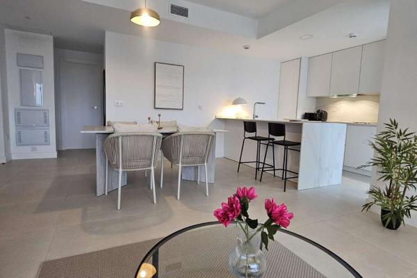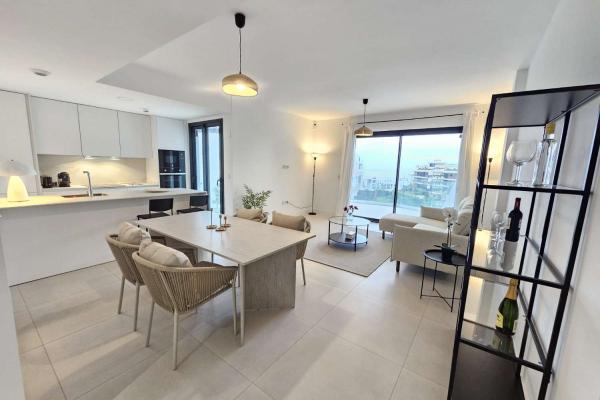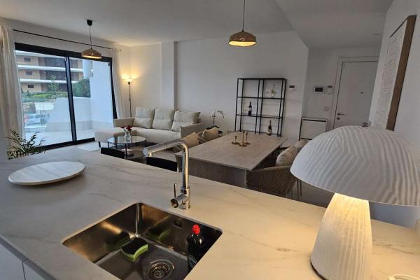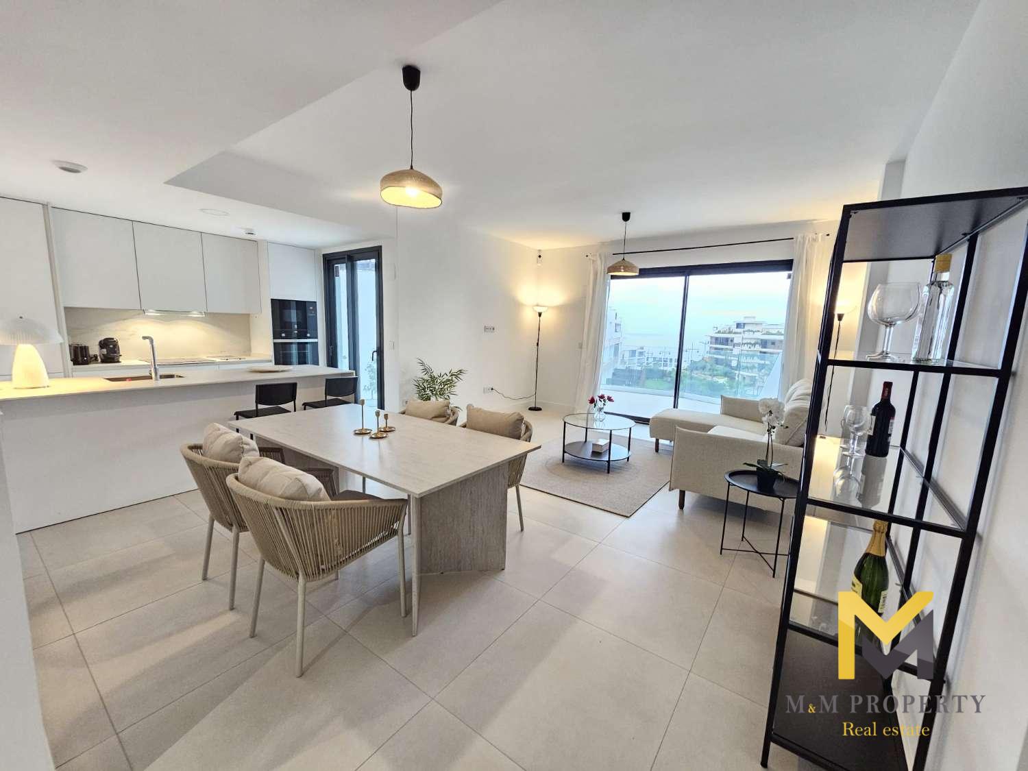 La cocina está completamente equipada con electrodomésticos de última generación, perfecta para los amantes de la gastronomía. Además, el sistema de aerotermia y el aire acondicionado garantizan un ambiente agradable durante todo el año. La amplia terraza con vistas al mar se convierte en el escenario perfecto para disfrutar de las suaves noches mediterráneas.