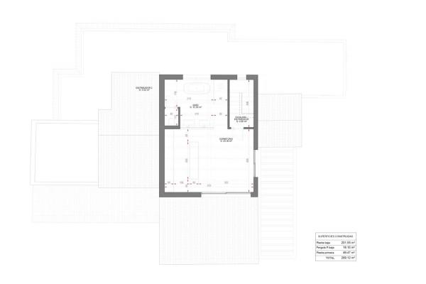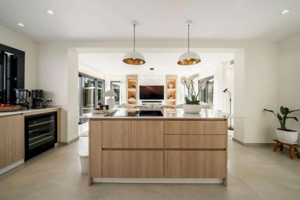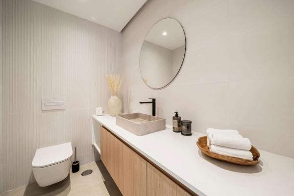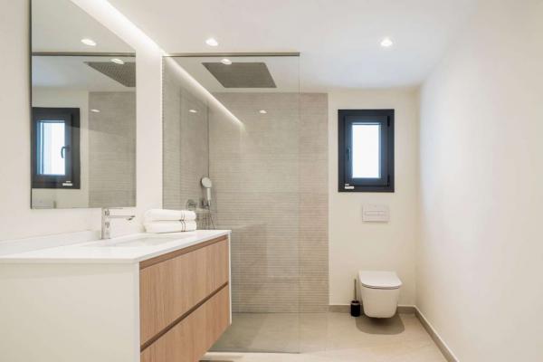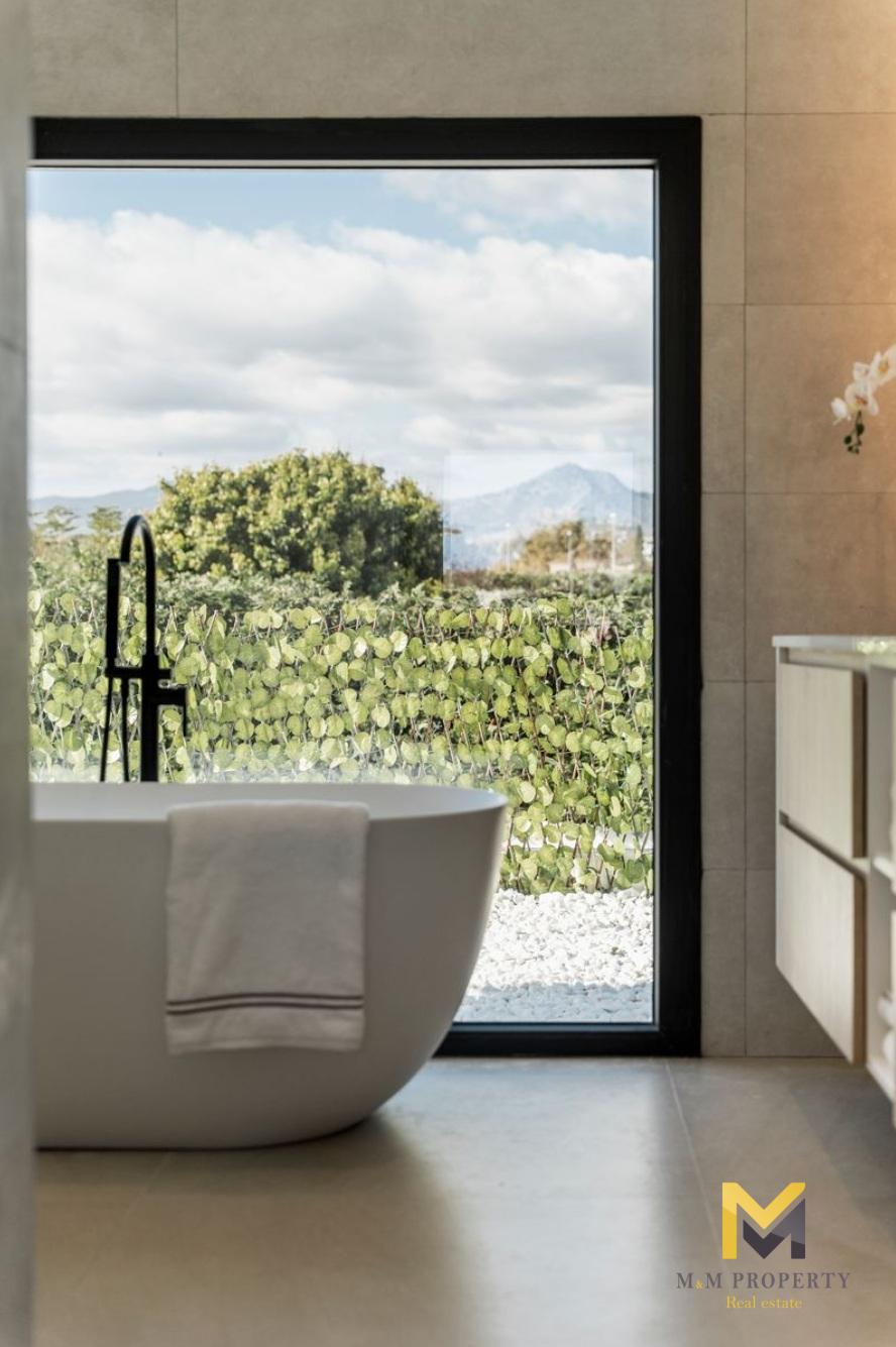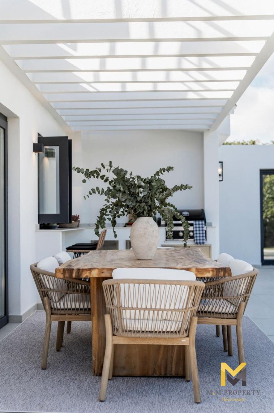 La villa est répartie sur deux étages, offrant une séparation optimale entre les espaces de vie et les chambres. L'intérieur comprend cinq chambres, chacune avec sa propre salle de bain, garantissant intimité et confort à la famille et aux invités. Lumineuses, confortables et bien agencées, les chambres créent une configuration équilibrée et fonctionnelle dans toute la maison.