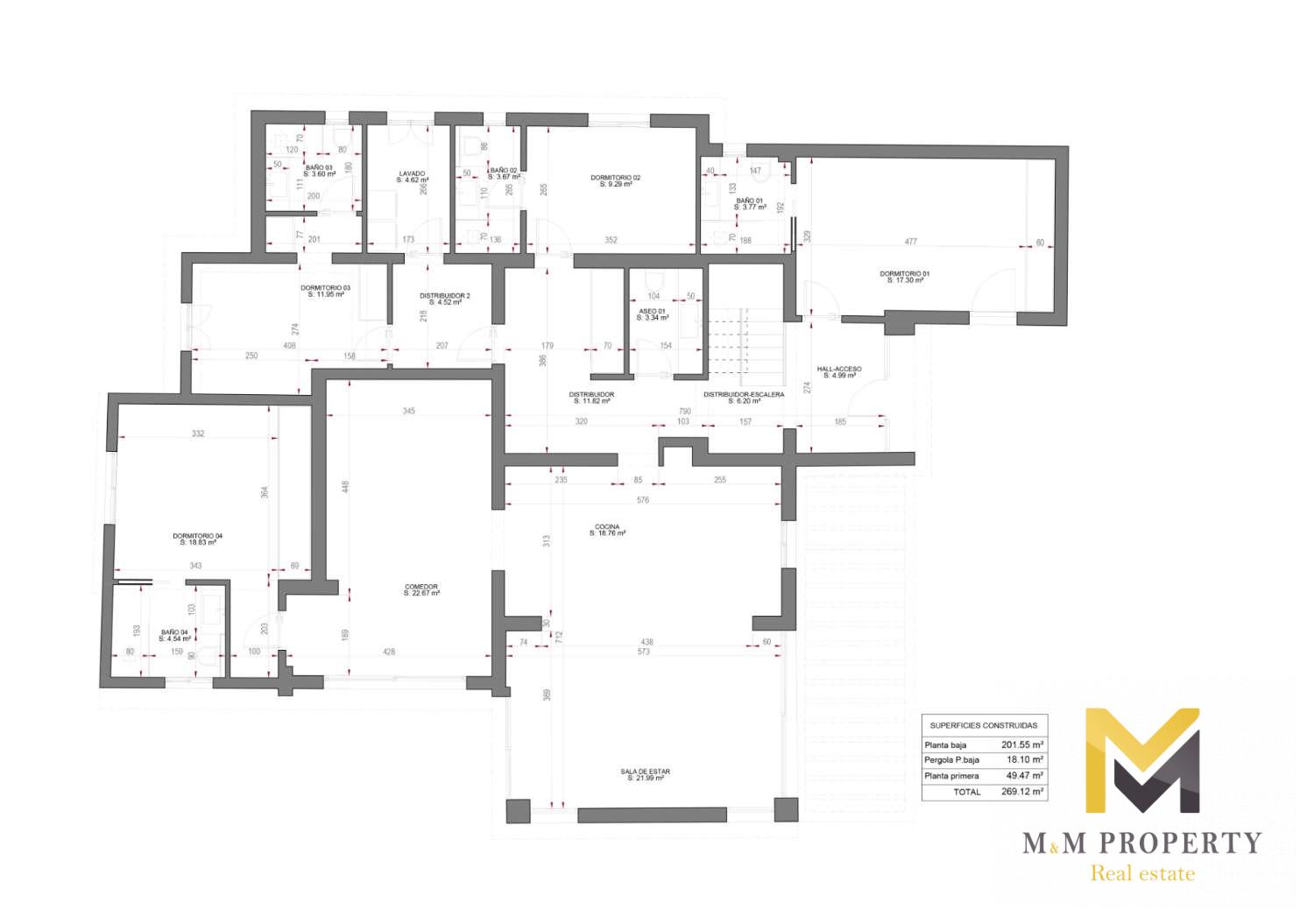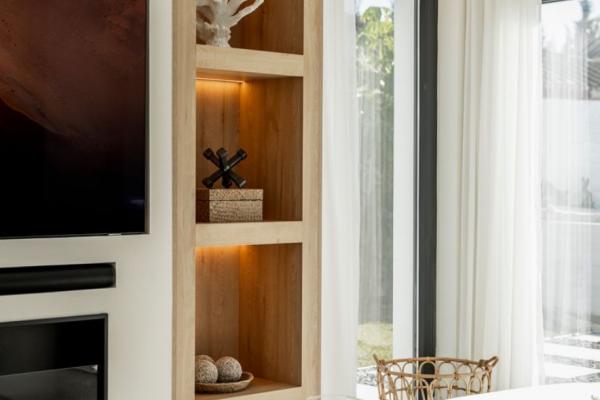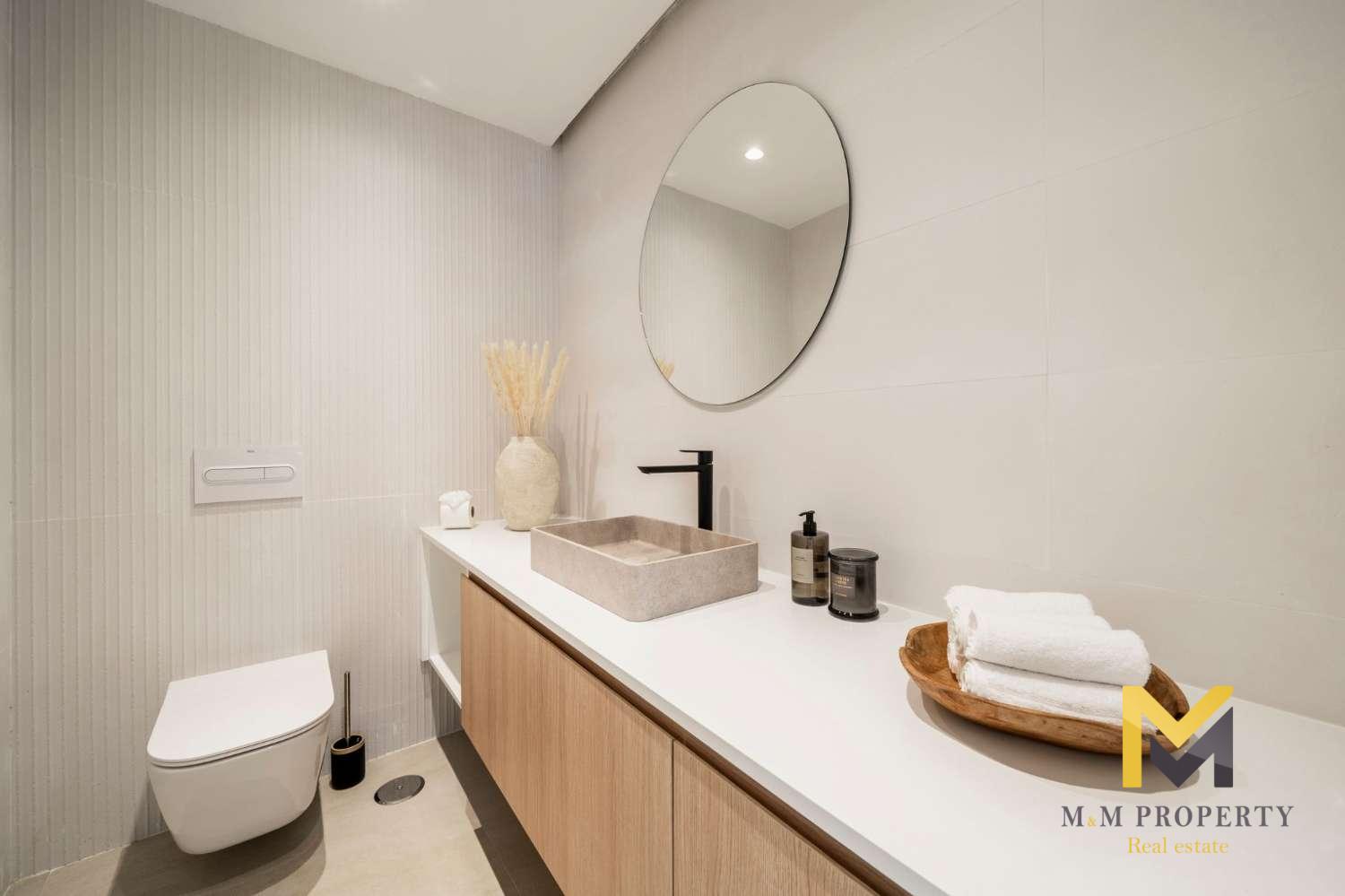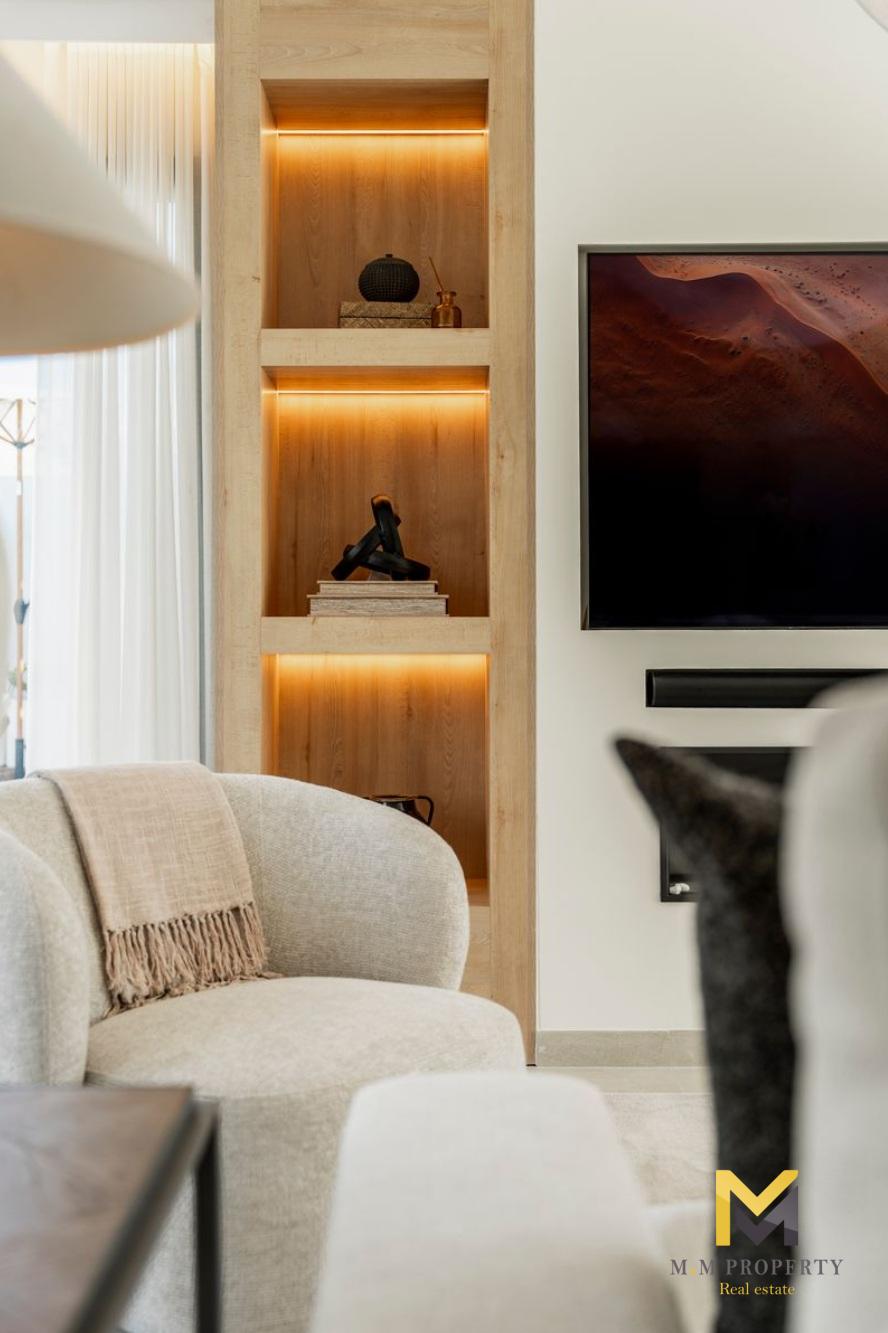 La villa est répartie sur deux étages, offrant une séparation optimale entre les espaces de vie et les chambres. L'intérieur comprend cinq chambres, chacune avec sa propre salle de bain, garantissant intimité et confort à la famille et aux invités. Lumineuses, confortables et bien agencées, les chambres créent une configuration équilibrée et fonctionnelle dans toute la maison.