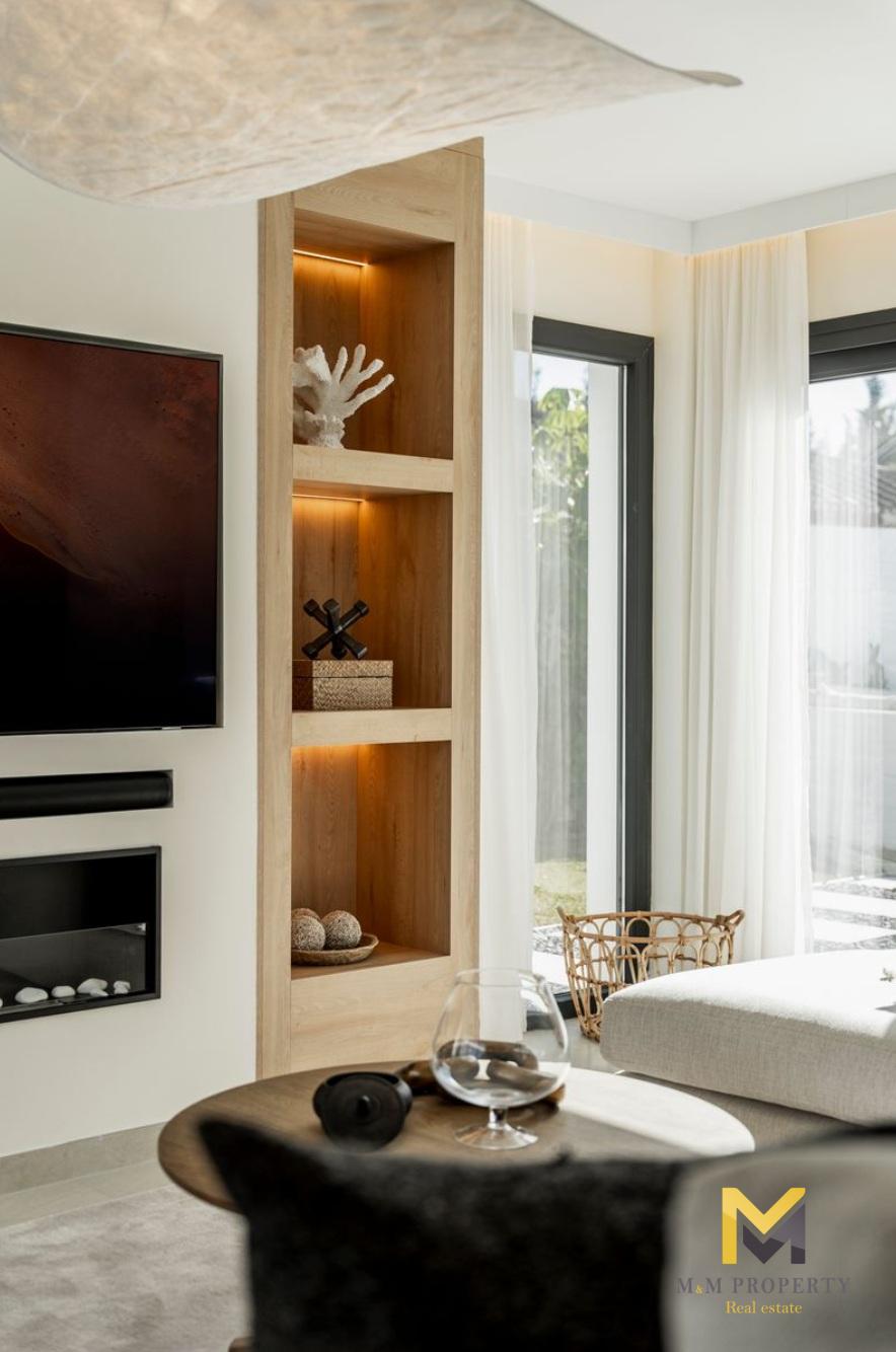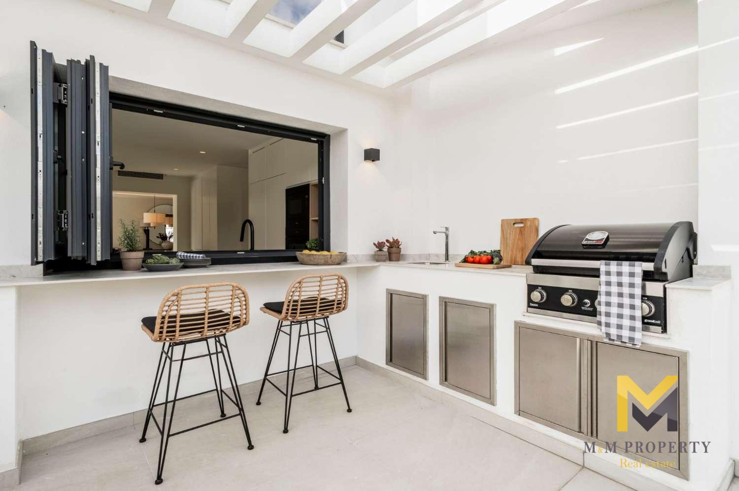 Les principaux espaces de vie communiquent harmonieusement avec les espaces extérieurs, créant une atmosphère détendue et ouverte. Les vastes terrasses offrent un espace généreux pour les repas en plein air, les bains de soleil ou simplement pour profiter du cadre environnant. Le jardin a été conçu pour un entretien facile tout en offrant un environnement agréable autour de la maison. Une salle de sport extérieure est un atout pratique pour ceux qui apprécient un mode de vie actif sans quitter leur domicile. L'emplacement est l'un des principaux avantages de cette propriété. Situé sur la plage de San Pedro, à seulement 1 km du célèbre restaurant El Ancla, le quartier est calme, bien établi et réputé pour son côté pratique, offrant une atmosphère côtière détendue tout en étant proche de tout ce que la région de Marbella a à offrir.